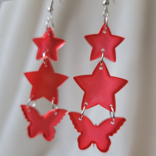Candy Red Star Butterfly Drop Earrings