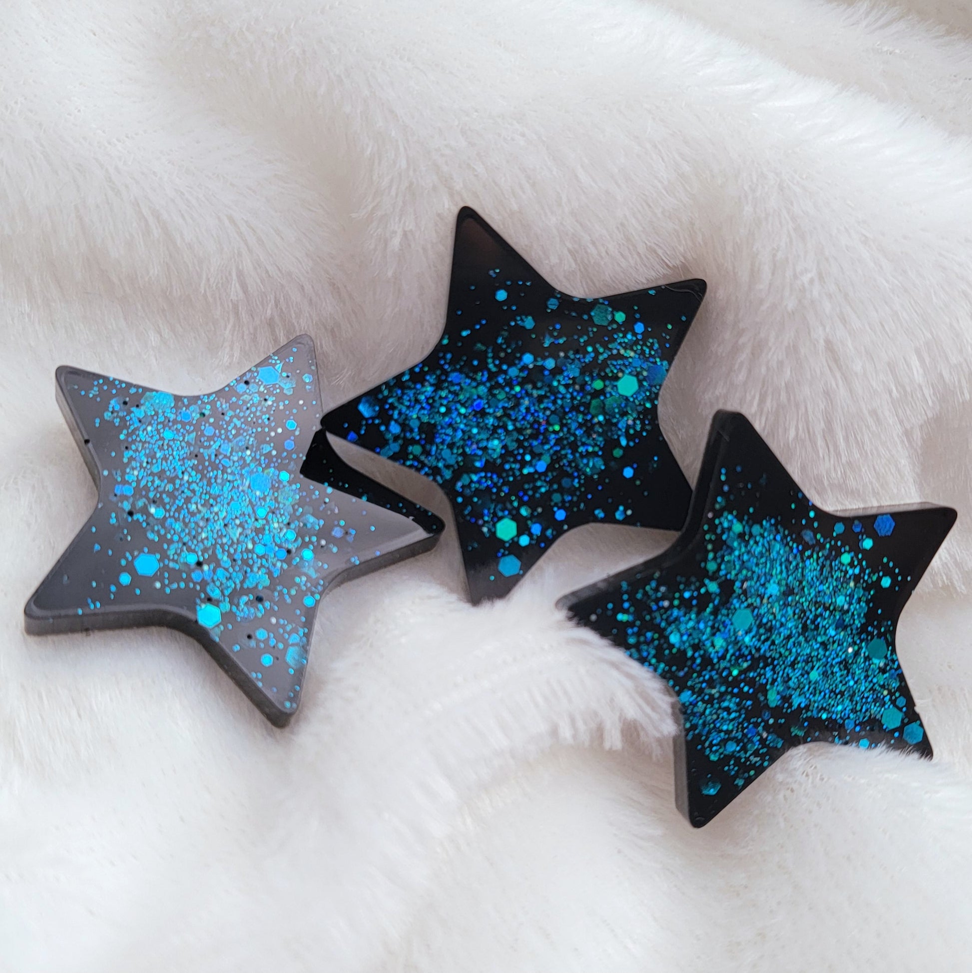 Get ready to sparkle with a striking epoxy resin statement piece. Featuring sleek black with a burst of vibrant aqua holographic glitter that catches light from every angle. Perfect for pet tags, keychains, or standalone charms that catch the light beautifully.